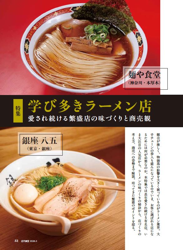 近代食堂は、個人店・中小飲食店のための経営専門誌として、ヒットメニューづくり、人づくり、店づくり向上の情報を毎月お伝えします