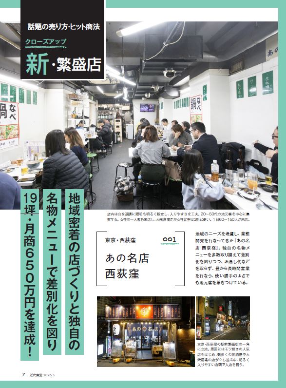 地域密着の店づくりと独自の名物メニューで差別化を図り19坪・月商650万円を達成