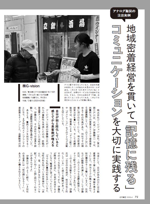 近代食堂は、個人店・中小飲食店のための経営専門誌として、ヒットメニューづくり、人づくり、店づくり向上の情報を毎月お伝えします