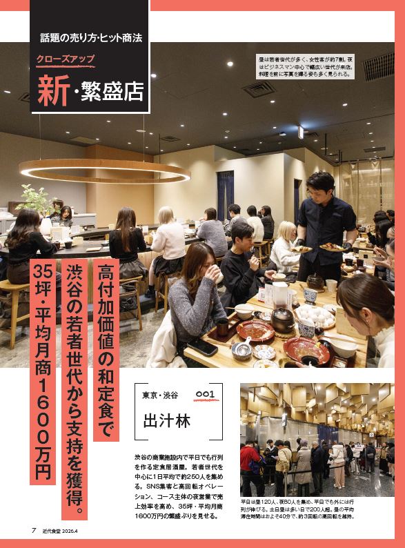 高付加価値の和定食で渋谷の若者世代から支持を獲得。35坪・平均月商1600万円