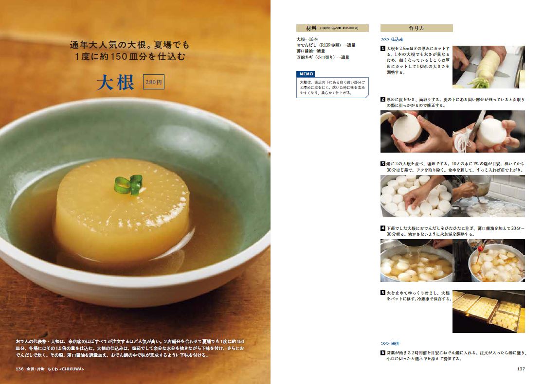 本書は、そうした新しい味づくりに挑戦する人気店を取材し、おでんだし、おでんダネのレシピと技術を紹介する専門料理書になります。